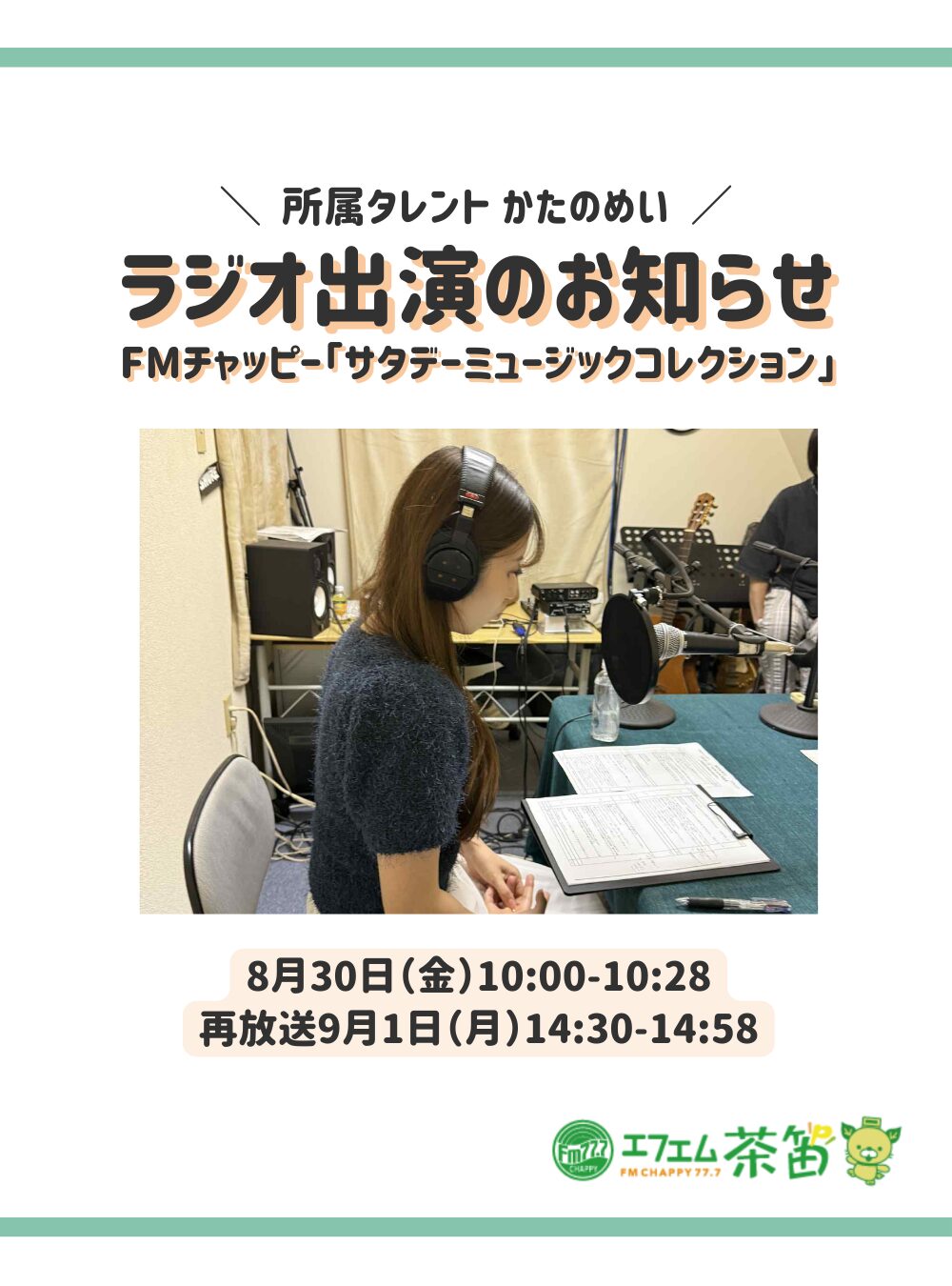 「かたのめい」8/30ラジオ出演のお知らせ!